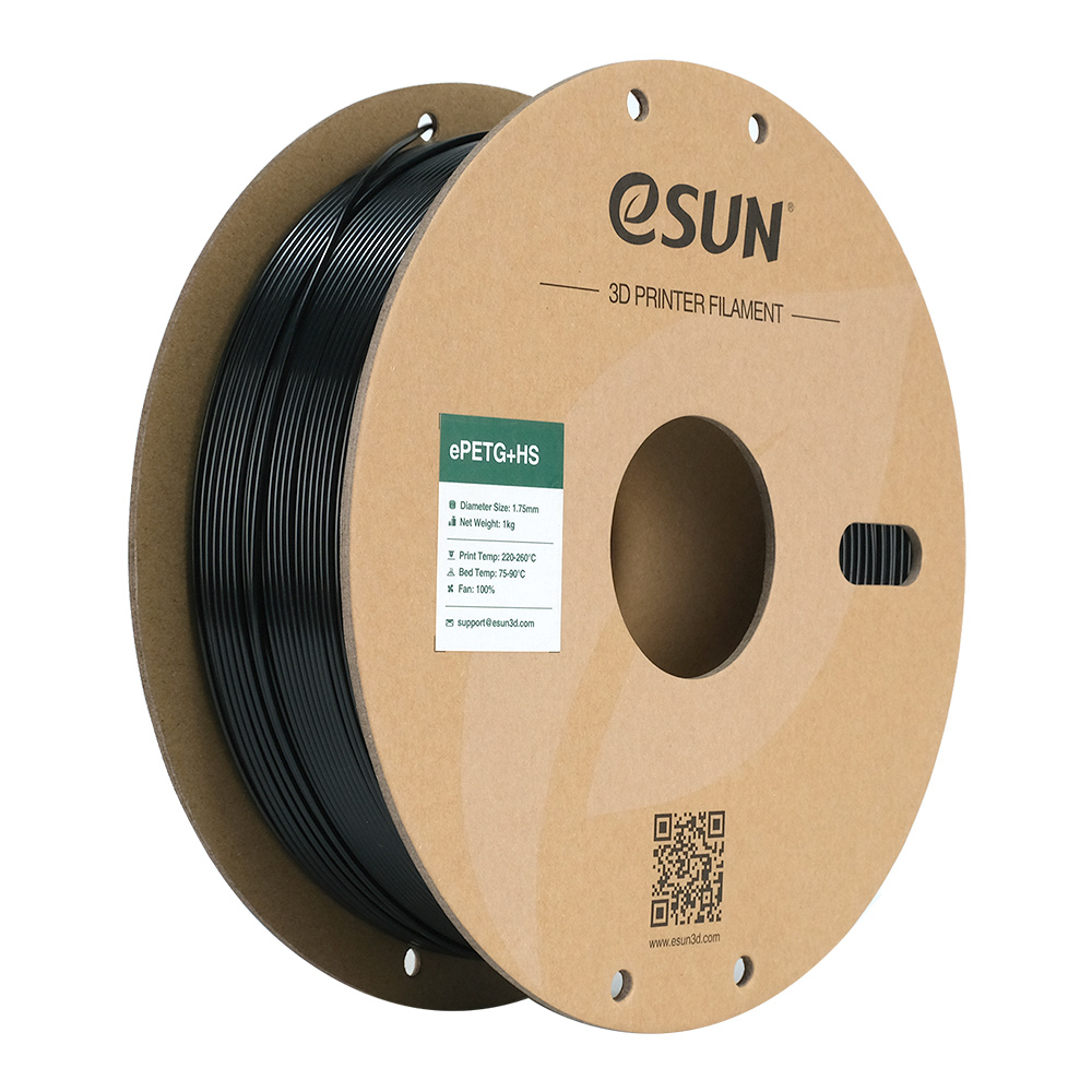 ePETG+HS, nowa formuła PETG zoptymalizowana pod kątem szybszego i lepszego krzepnięcia podczas chłodzenia, kompatybilna z drukowaniem z dużą prędkością, zoptymalizowana przyczepność materiału do dyszy podczas drukowania, zmniejszająca prawdopodobieństwo słabego drukowania, ekonomiczny wodoodporny, odporny na chemikalia, o wysokiej wytrzymałości i szybki materiał do drukowania.