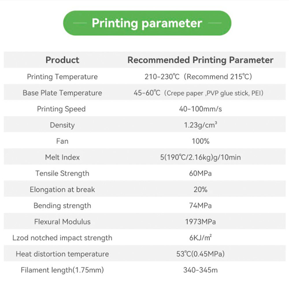 • Temperatura druku: 205–225 °C