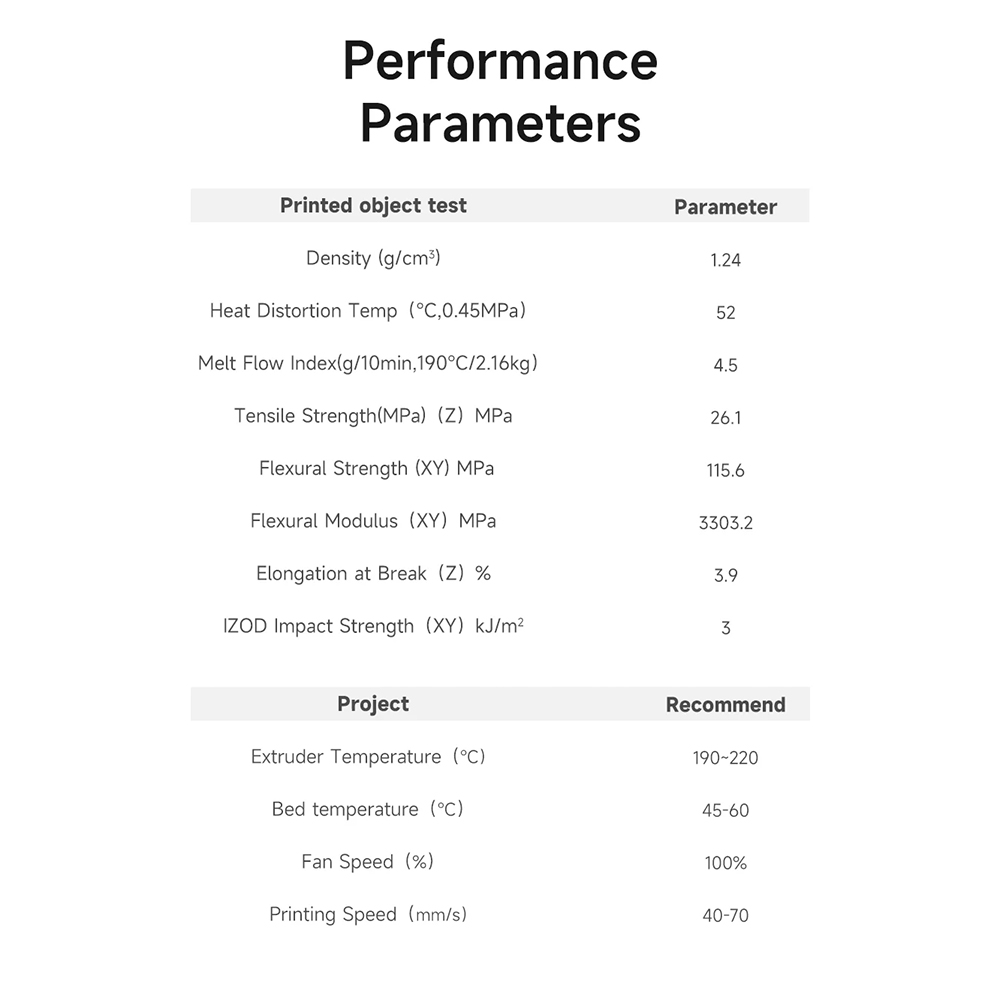 Minimalna tolerancja i niskie wypaczenie zapewniają spójne podawanie i stabilne wydruki, dobre wiązanie warstw, mniej sznurków, brak pęcherzyków powietrza i łatwą obsługę, co skutkuje wyjątkowym wykończeniem powierzchni, które jest bardzo precyzyjne.
