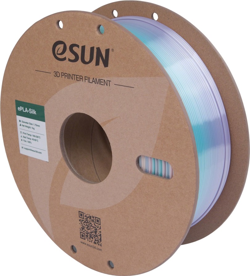 Jako najnowszy produkt eSUN, eSilk-pla jest modyfikowany poprzez dodanie materiałów o jasnych efektach w PLA, aby uzyskać bardziej błyszczący wygląd. eSilk-PLA jest podobny do filamentu PLA o dobrych właściwościach mechanicznych i dobrej wytrzymałości. Jest przyjazny dla środowiska i nietoksyczny. W porównaniu z tradycyjnym PLA, jedwabny materiał o wysokim połysku ma jasny, jedwabisty połysk. Jedwabne materiały drukarskie PLA o wysokim świetle może być szeroko stosowany w modelach o dużych zakrzywionych powierzchniach i praktycznych produktach, takich jak akcesoria meblowe, dekoracje, dekoracje zewnętrzne i inne. Ze względu na dobrą wydajność drukowania, doskonałe wykończenie i wygląd, produkt zyska coraz większą uwagę na globalnym rynku.