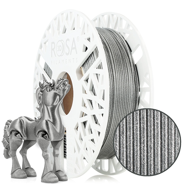 PLA Galaxy 1,75mm Brillant Silver 0,5kg to materiał do druku 3D na bazie PLA (polilaktyd) wypełniony drobinkami srebrnego brokatu. To wytrzymały i łatwy w użyciu filament, idealny dla osób rozpoczynających swoją przygodę z drukiem 3D.Seria PLA Galaxy to materiały do druku 3D opracowane na bazie popularnego PLA wzbogacone o dodatek błyszczących drobinek brokatu. Ten łatwy w użyciu materiał do druku 3D zmniejsza widoczność warstw, jednocześnie zwiększając atrakcyjność wizualną Twoich projektów. Idealny dla początkujących entuzjastów druku 3D oraz profesjonalistów, filament 3D PLA Galaxy można drukować na tych samych ustawieniach co PLA Starter. Nie wykazuje właściwości ściernych dyszy drukarki 3D - nie wymaga stosowania dysz ze stali hartowanej. Filament PLA Galaxy występuje w szerokiej gamie kolorystycznej.