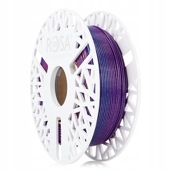 PLA Galaxy Rainbow 1,75mm Andromeda 0,5kg to materiał do druku 3D na bazie PLA (polilaktyd) wypełniony drobinkami srebrnego brokatu oraz oferujący łagodne przejścia kolorystyczne. To wytrzymały i łatwy w użyciu filament, idealny dla osób rozpoczynających swoją przygodę z drukiem 3D. Pełny cykl kolorystyczny wynosi 150g.Seria PLA Galaxy Rainbow to materiały do druku 3D opracowane na bazie popularnego PLA wzbogacone o dodatek błyszczących drobinek brokatu. Ten łatwy w użyciu materiał do druku 3D zmniejsza widoczność warstw, jednocześnie zwiększając atrakcyjność wizualną Twoich projektów. Idealny dla początkujących entuzjastów druku 3D oraz profesjonalistów, filament 3D PLA Galaxy Rainbow można drukować na tych samych ustawieniach co PLA Starter. Nie wykazuje właściwości ściernych dyszy drukarki 3D - nie wymaga stosowania dysz ze stali hartowanej.