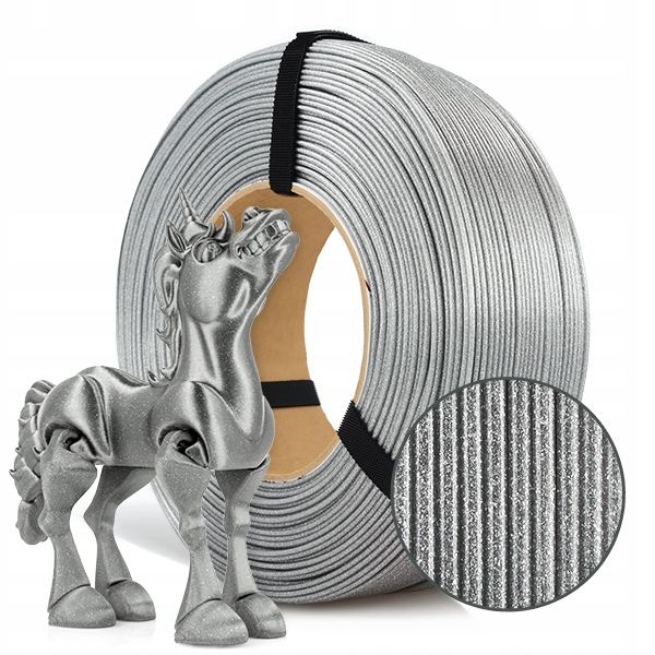 ReFill PLA Galaxy 1,75mm Brillant Silver 1kg to materiał do druku 3D na bazie PLA (polilaktyd) wypełniony drobinkami srebrnego brokatu. To wytrzymały i łatwy w użyciu filament, idealny dla osób rozpoczynających swoją przygodę z drukiem 3D.Seria PLA Galaxy to materiały do druku 3D opracowane na bazie popularnego PLA wzbogacone o dodatek błyszczących drobinek brokatu. Ten łatwy w użyciu materiał do druku 3D zmniejsza widoczność warstw, jednocześnie zwiększając atrakcyjność wizualną Twoich projektów. Idealny dla początkujących entuzjastów druku 3D oraz profesjonalistów, filament 3D PLA Galaxy można drukować na tych samych ustawieniach co PLA Starter. Nie wykazuje właściwości ściernych dyszy drukarki 3D - nie wymaga stosowania dysz ze stali hartowanej. Filament PLA Galaxy występuje w szerokiej gamie kolorystycznej.