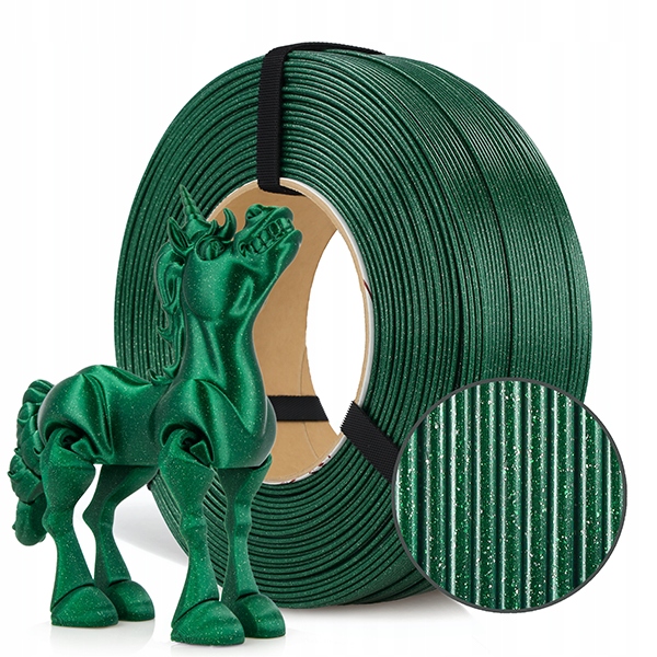 ReFill PLA Galaxy 1,75mm Emerald Green 1kg to materiał do druku 3D na bazie PLA (polilaktyd) wypełniony drobinkami srebrnego brokatu. To wytrzymały i łatwy w użyciu filament, idealny dla osób rozpoczynających swoją przygodę z drukiem 3D.Seria PLA Galaxy to materiały do druku 3D opracowane na bazie popularnego PLA wzbogacone o dodatek błyszczących drobinek brokatu. Ten łatwy w użyciu materiał do druku 3D zmniejsza widoczność warstw, jednocześnie zwiększając atrakcyjność wizualną Twoich projektów. Idealny dla początkujących entuzjastów druku 3D oraz profesjonalistów, filament 3D PLA Galaxy można drukować na tych samych ustawieniach co PLA Starter. Nie wykazuje właściwości ściernych dyszy drukarki 3D - nie wymaga stosowania dysz ze stali hartowanej. Filament PLA Galaxy występuje w szerokiej gamie kolorystycznej.