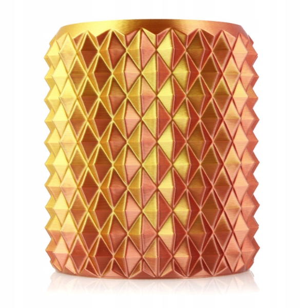 PLA Magic Silk to filament do druku 3D opracowany na bazie PLA-Silk. Co go wyróżnia? To równoległe połączenie dwóch kolorów w jednej nitce, osiągnięte dzięki procesowi koekstruzji. Gotowe wydruki 3D mienią się kolorami tworząc „magiczne” efekty wizualne. Wydruki modeli 3D o złożonej, nierównej strukturze z licznymi detalami wyglądają najbardziej efektownie.Z PLA Magic Silk druk 3D staje się prostszy i bardziej kreatywny. Ciesz się łatwością drukowania, intensywnymi kolorami i niezrównanym połyskiem powierzchni, typowymi dla PLA-Silk.Dlaczego warto wybrać PLA Magic Silk:Baw się drukiem 3D korzystając z całej linii PLA Magic Silk.