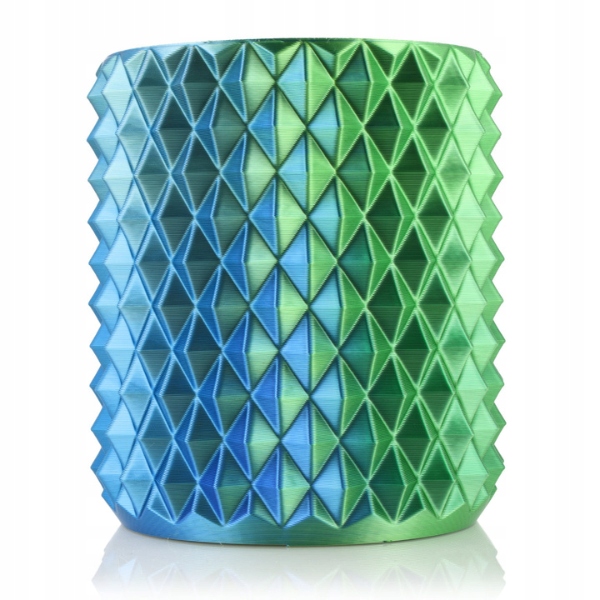 PLA Magic Silk to filament do druku 3D opracowany na bazie PLA-Silk. Co go wyróżnia? To równoległe połączenie dwóch kolorów w jednej nitce, osiągnięte dzięki procesowi koekstruzji. Gotowe wydruki 3D mienią się kolorami tworząc „magiczne” efekty wizualne. Wydruki modeli 3D o złożonej, nierównej strukturze z licznymi detalami wyglądają najbardziej efektownie.Z PLA Magic Silk druk 3D staje się prostszy i bardziej kreatywny. Ciesz się łatwością drukowania, intensywnymi kolorami i niezrównanym połyskiem powierzchni, typowymi dla PLA-Silk.Dlaczego warto wybrać PLA Magic Silk:Baw się drukiem 3D korzystając z całej linii PLA Magic Silk.